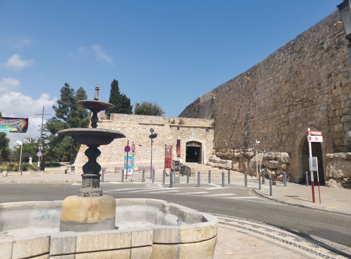 Desde la posición elevada de la muralla, la ciudad se desplegaba en diferentes niveles, mostrando el casco histórico de calles estrechas y edificios de piedra que descendían hacia el Mediterráneo. Las avenidas modernas y los barrios más recientes se extendían hacia la costa, donde el azul del mar se convertía en el telón de fondo permanente de la ciudad. La luz mediterránea, especialmente al atardecer, bañaba las fachadas y resaltaba los tonos cálidos de la piedra y las tejas.