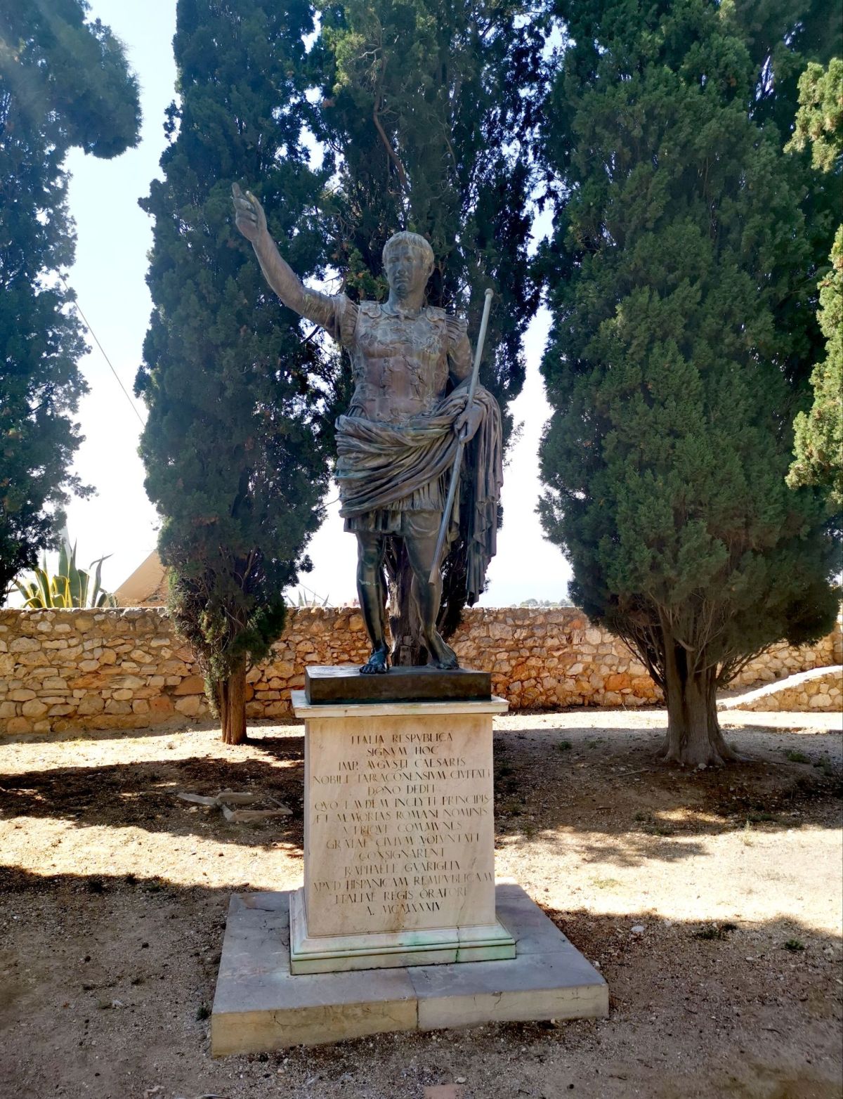 Caminar junto a estos muros es recorrer más de dos mil años de historia, desde los primeros asentamientos romanos hasta la ciudad actual. Se encuentraba una escultura dedicada al emperador Augusto. Residió aquí durante un tiempo a finales del siglo I a. C., cuando dirigía las campañas militares en Hispania. Durante su reinado, la ciudad se consolidó como capital de la provincia Hispania Tarraconensis, convirtiéndose en uno de los centros políticos más importantes de la península.