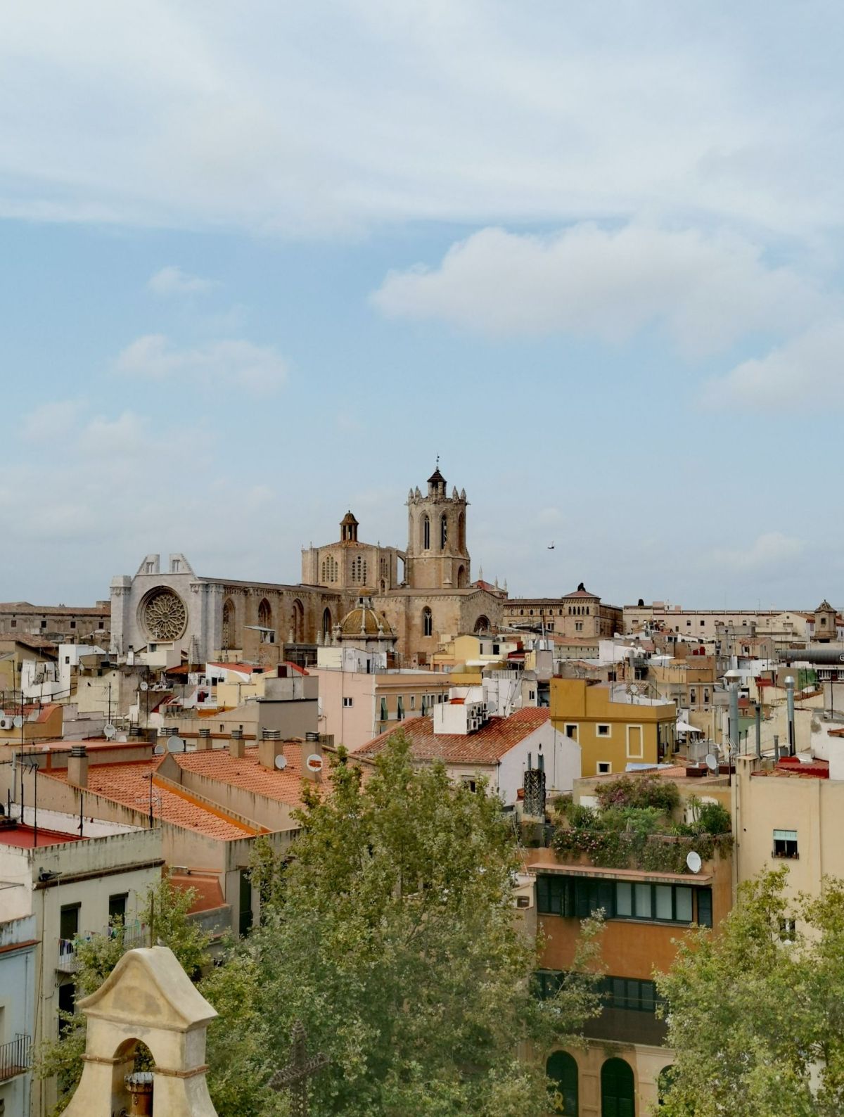 Hacia un lado se distinguía la Part Alta, el núcleo histórico donde las calles estrechas y las casas de piedra seguían el trazado heredado de la época medieval. Entre los tejados emergía la silueta dominante de la Catedral de Tarragona, que ocupa el punto más elevado de la ciudad.