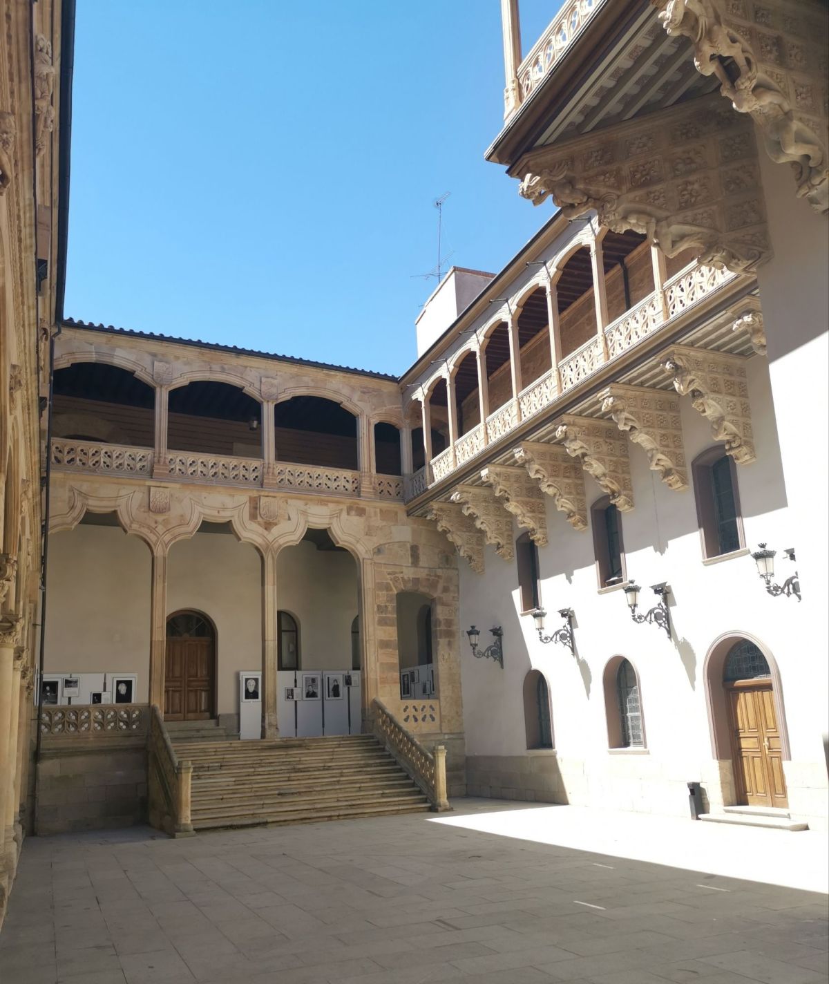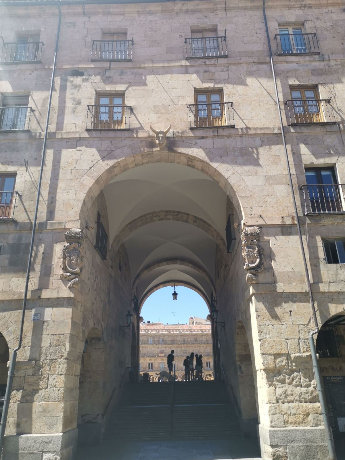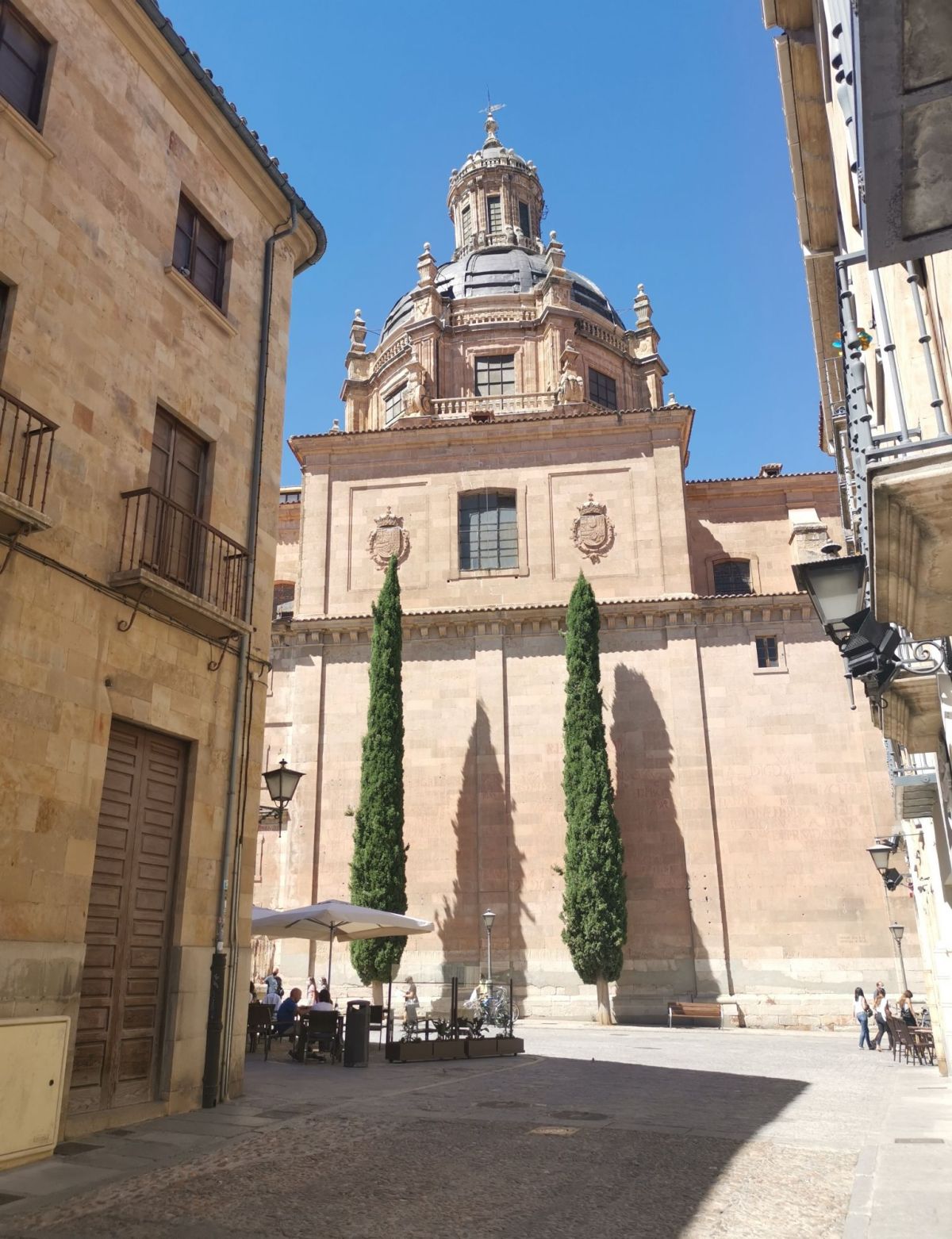 Al cruzar la fachada se accedía al Patio de Escuelas, un espacio solemne rodeado de edificios históricos como las Escuelas Mayores, las Escuelas Menores y el Hospital del Estudio. Sus amplios espacios me permitían contemplar con calma la riqueza arquitectónica que lo rodeaba: muros de piedra dorada, escudos, balcones y detalles renacentistas. Era un lugar de encuentro entre pasado y presente: los estudiantes iban a clase y los turistas buscaban la historia.