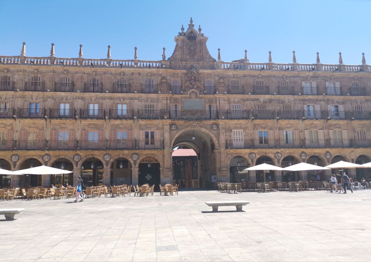 这里是这座城市最代表西班牙文化的地方,也是欧洲最精美的巴洛克式封闭广场之一。广场建于1729年至1755年间,主要由阿尔贝托·德·丘里格拉与尼古拉斯·德·丘里格拉兄弟设计。广场一侧为市政厅,其宏伟的立面与中央钟楼极具辨识度。广场始终充满活力,是城市重要的公共聚会场所,四周环绕着众多咖啡馆与餐厅,构成萨拉曼卡日常生活的核心舞台。