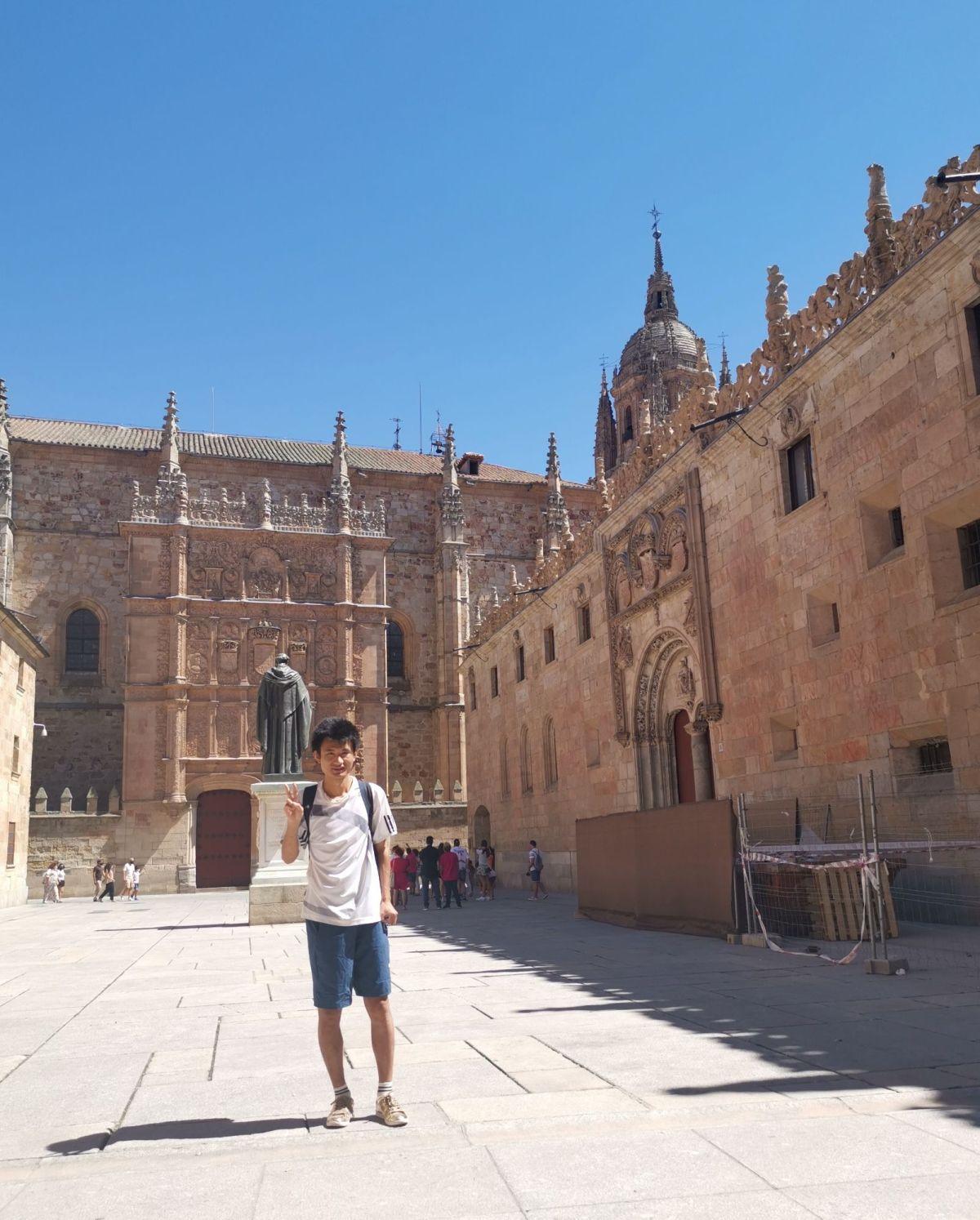 2020年8月17日下午,告别阿维拉后,我继续前往萨拉曼卡。萨拉曼卡的老城区宛如一座露天博物馆,每一条街道、每一个广场都在低声讲述着跨越数个世纪的历史。老城区的建筑多采用当地特有的维拉马约尔石砌成,自我踏入这片土地的那一刻起,便感受到一种温暖而又庄严的独特气息。
