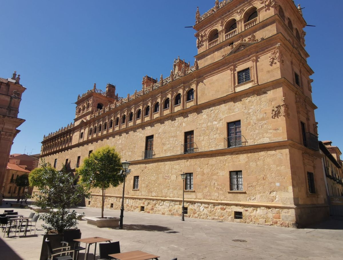 La Universidad de Salamanca, fundada en 1218, es una de las más antiguas de Europa y el gran símbolo cultural de la ciudad. El elemento más emblemático de la universidad es su famosa fachada plateresca, una de las joyas del Renacimiento español. En ella se combinan escudos reales, medallones, motivos vegetales, figuras mitológicas y símbolos religiosos. En el centro de la fachada destaca el escudo de los Reyes Católicos, que subraya la importancia política y académica que la universidad tenía en aquella época.