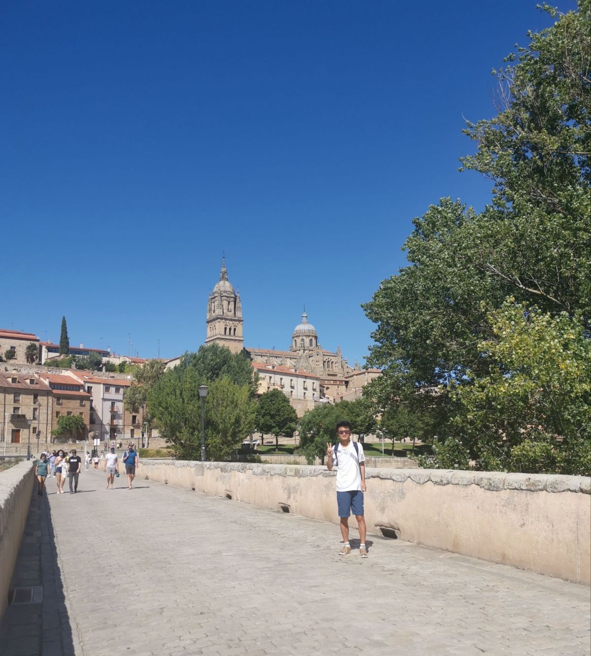 我的萨拉曼卡之旅在一段久久萦绕心头的美好回忆中画上句点。城市弥漫着告别的金色光芒:夕阳洒在马约尔广场的石面上闪闪发亮,托尔梅斯河水缓缓流淌。临行之际,心中涌起一丝甜美的怀旧:在教堂与罗马桥前拍下的最后一张照片,让我明白,这不是永别,而只是一次“后会有期”。